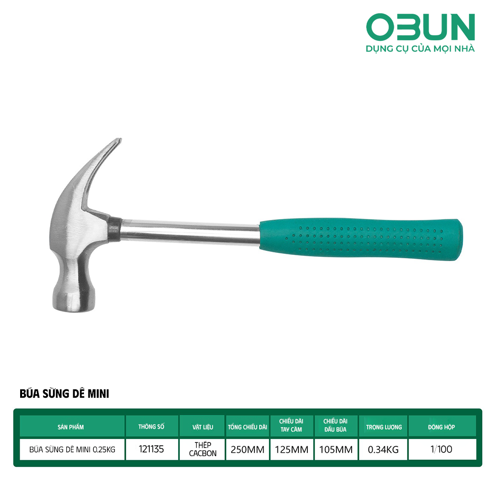 búa sừng dê mini 0.25kg, búa mini cán dài, búa nhổ đinh nhỏ gọn, búa đóng đinh 250g, búa sừng dê cho DIY, dụng cụ cầm tay OBUN, mua búa mini TPHCM